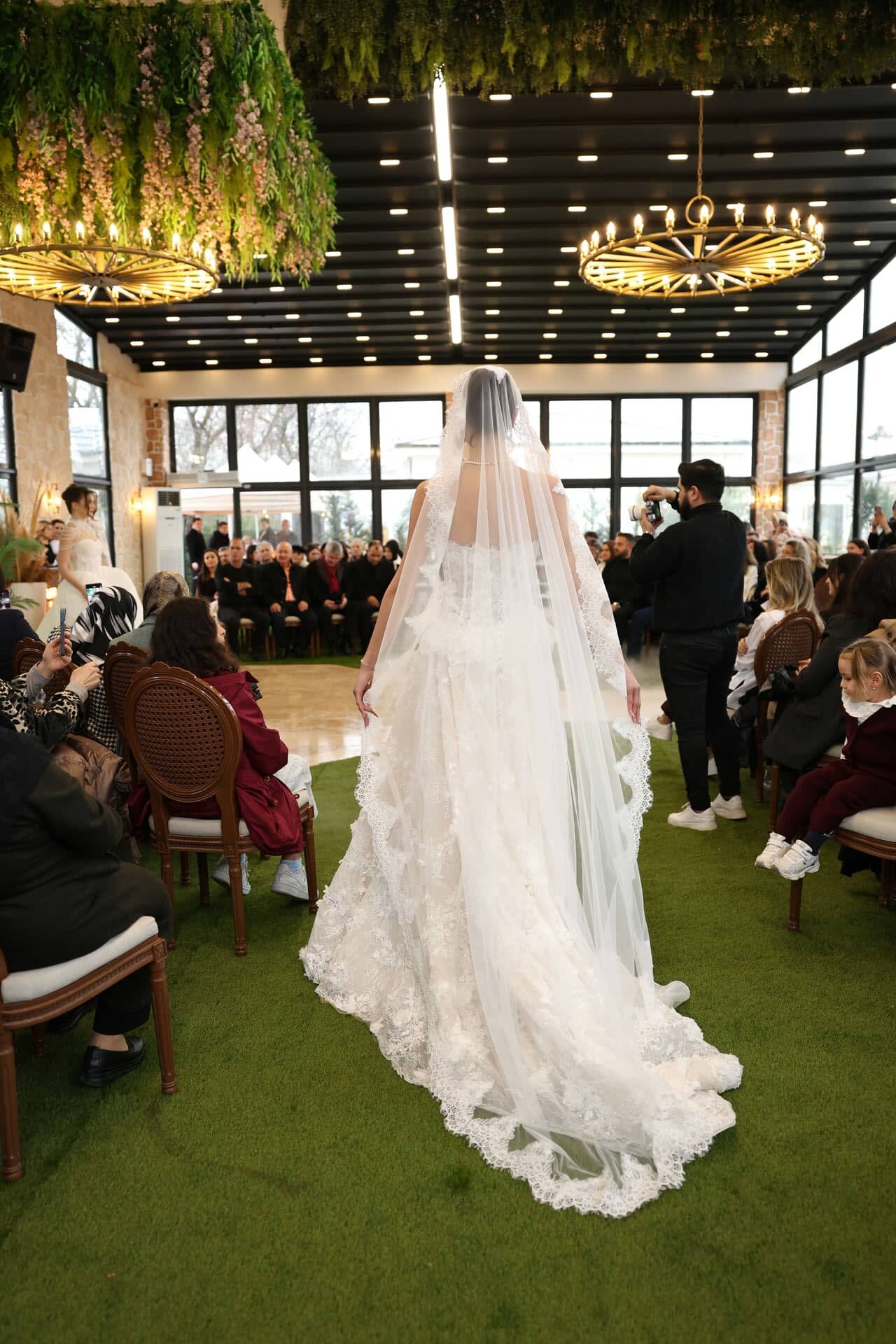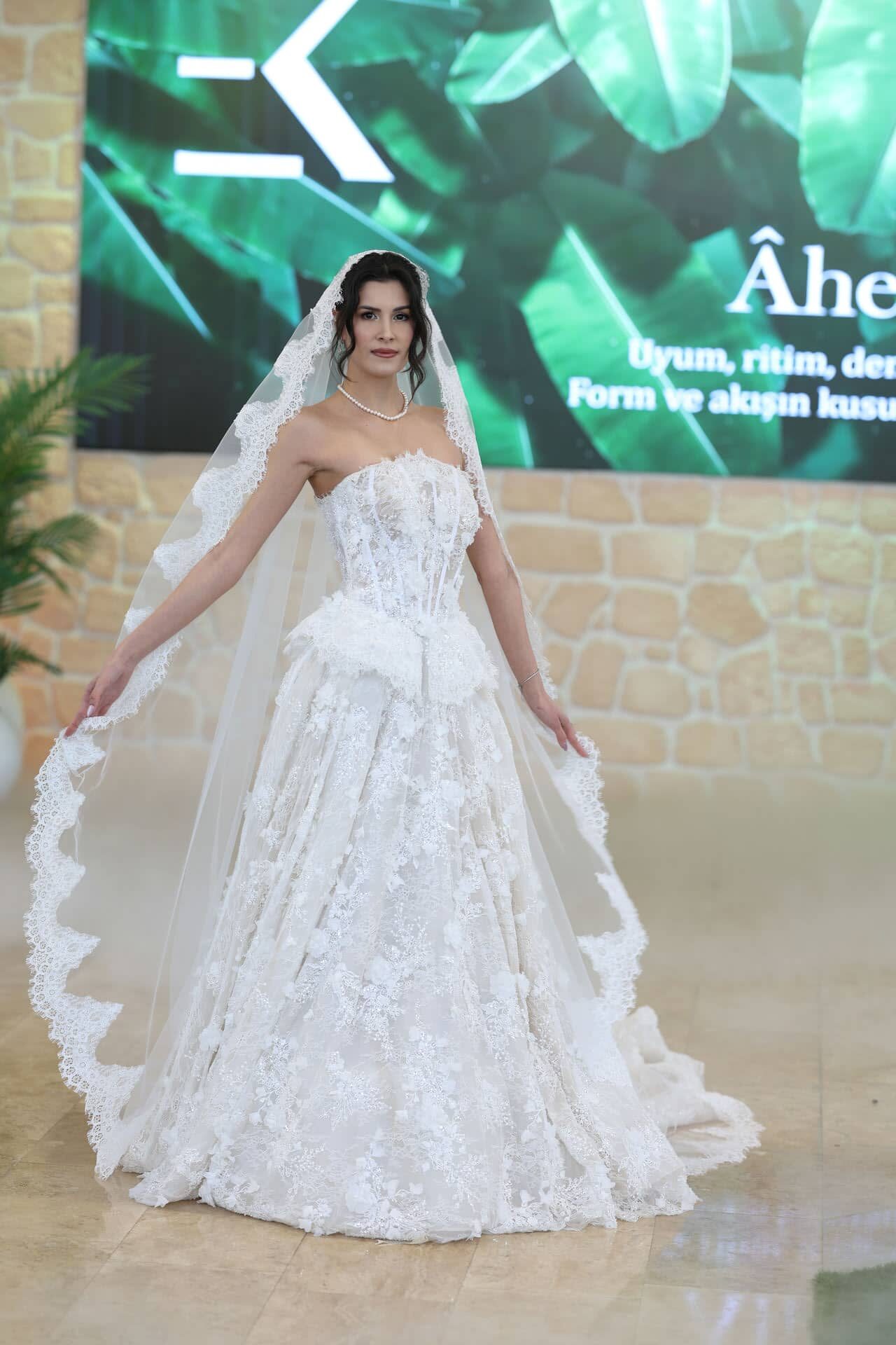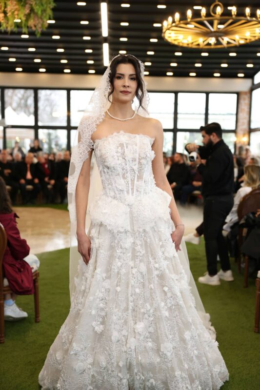Lez fransız danteli üzerine kasnak ve üç boyutlu çiçek işlemeli,